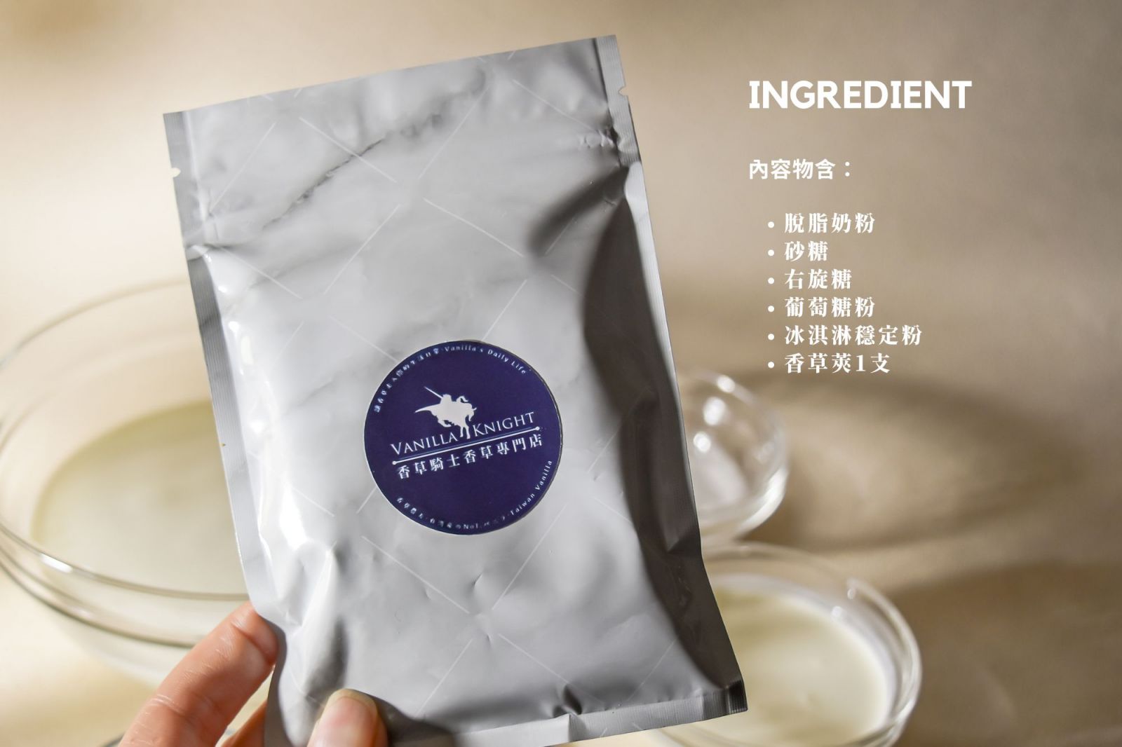 - 冰淇淋粉 1包(500g冰淇淋份量)+香草莢1支(台灣波本)